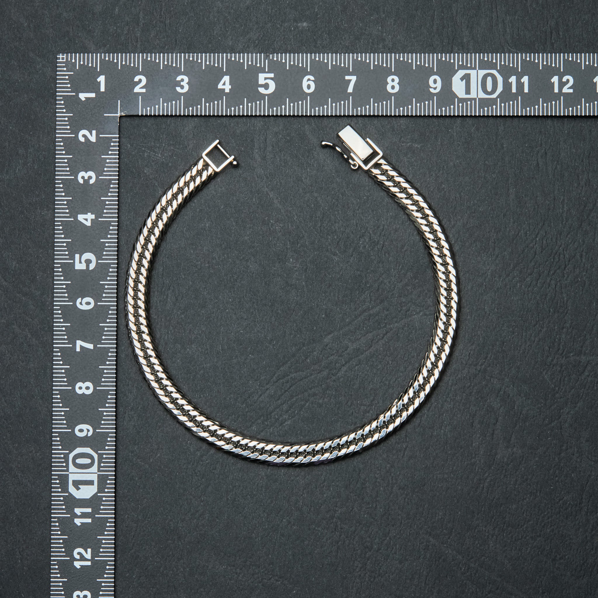 プラチナの深く落ち着いた輝きを最大限に引き出すため、Tokyo Cubanの真骨頂「トリプル12面カット」技術を惜しみなく注ぎ込んだ、18cm、約21gの喜平ブレスレット。